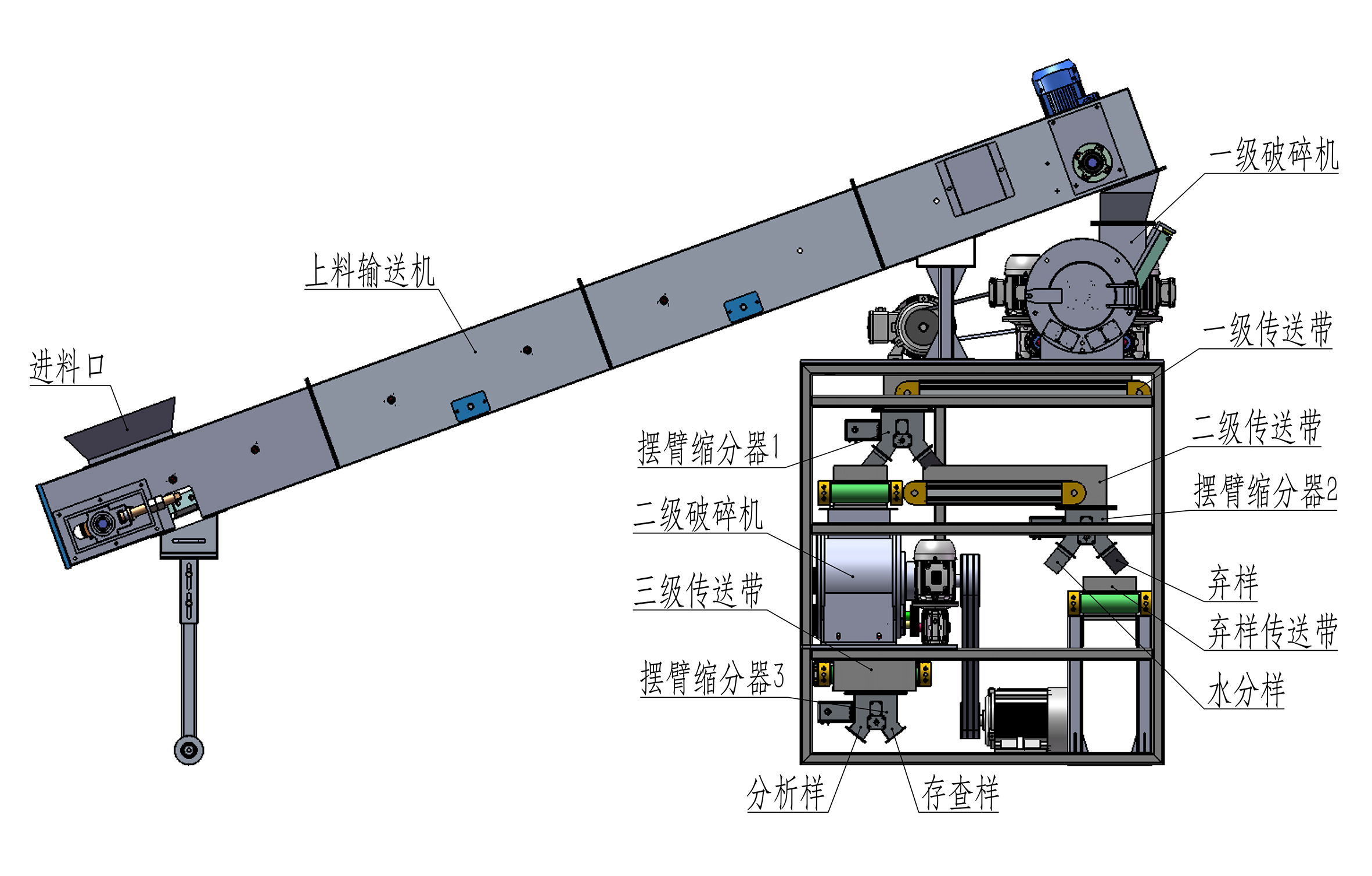 7、給料、破碎、清掃、縮分、棄樣輸送等機構(gòu)均為獨立驅(qū)動,便于維護(hù)保養(yǎng)。